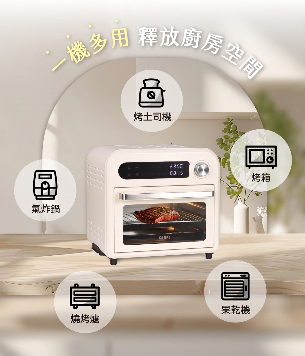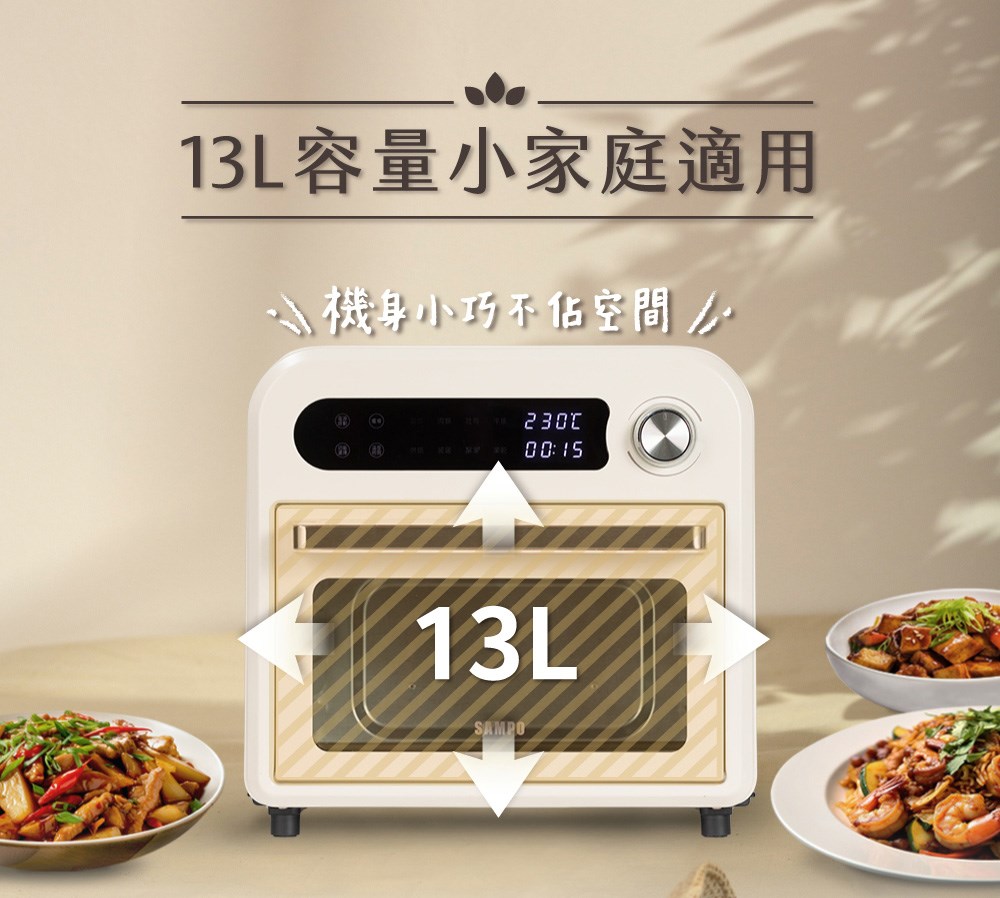 【SAMPO聲寶】13L多功能微電腦氣炸電烤箱