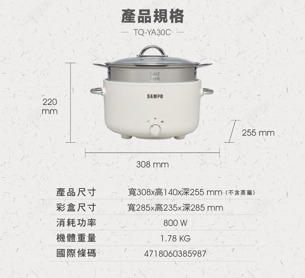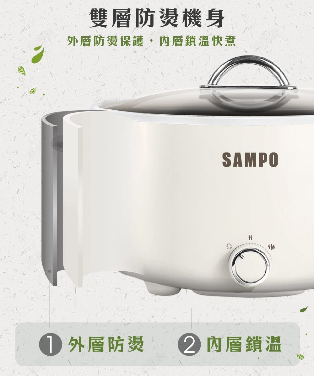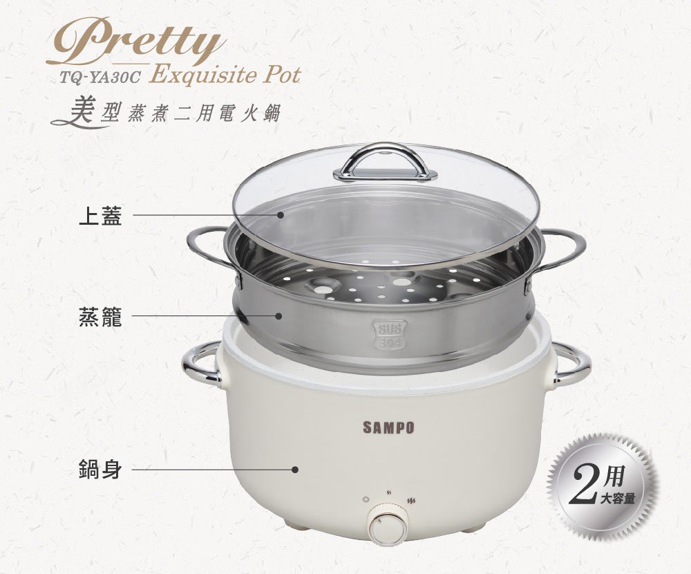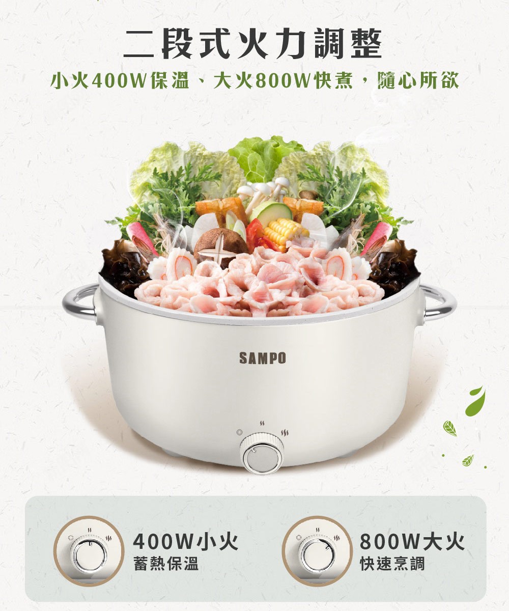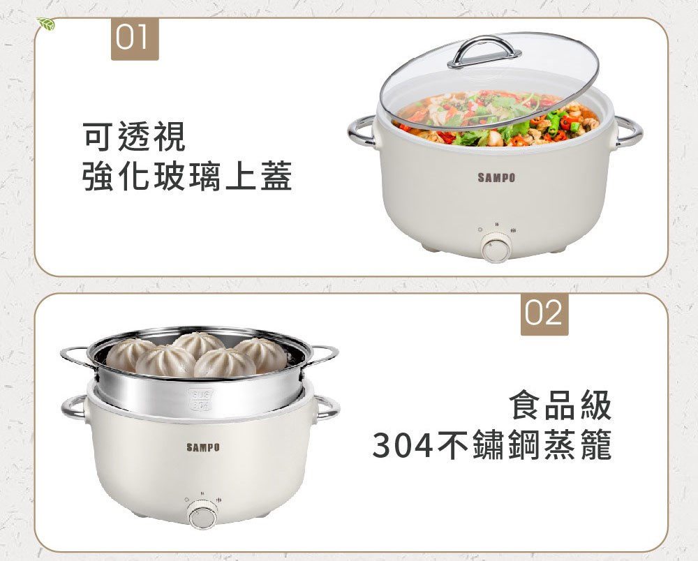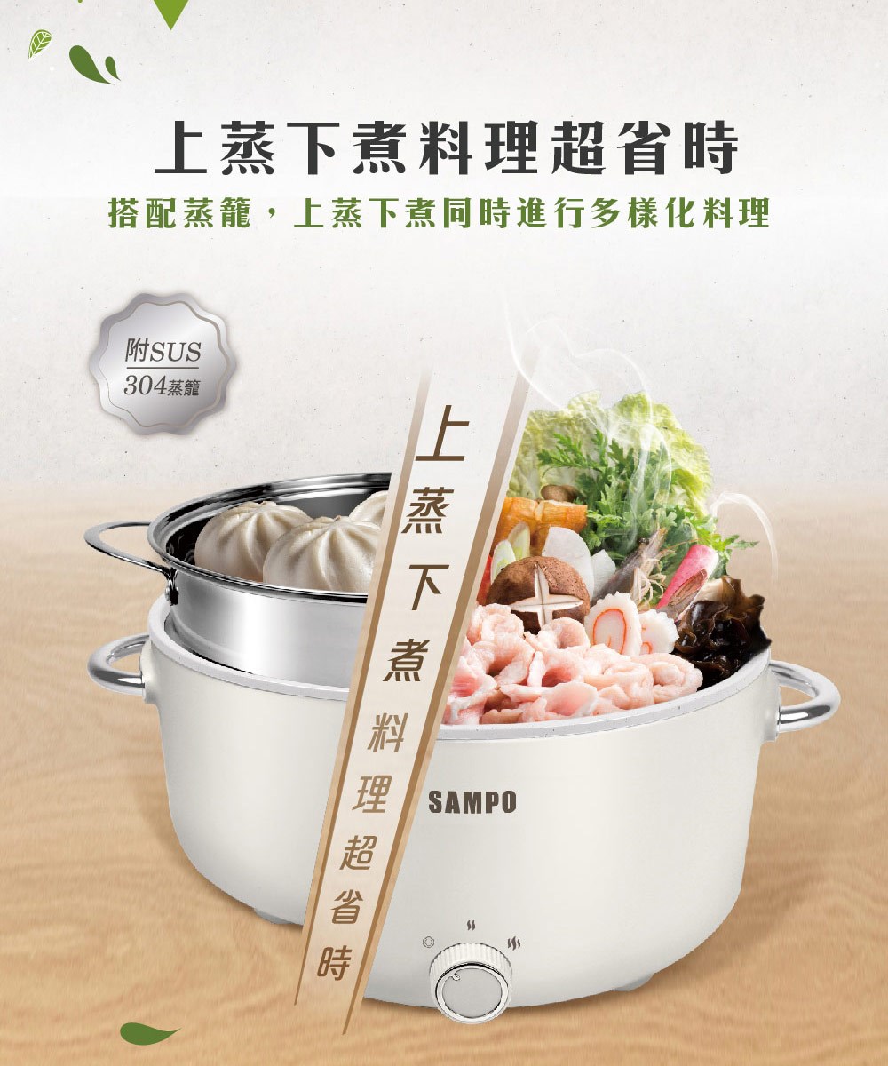 【SAMPO聲寶】3L美型蒸煮二用電火鍋(附蒸籠)