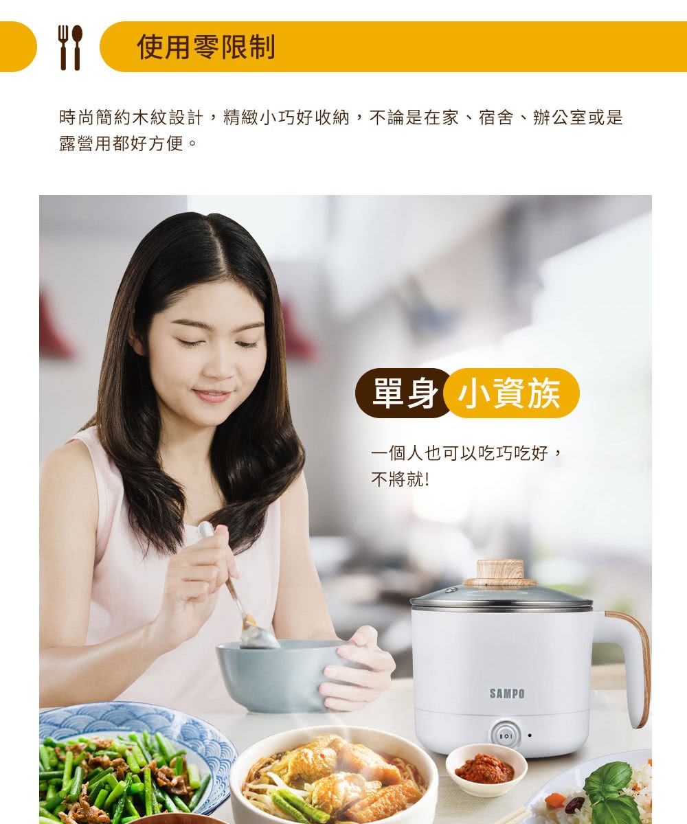 【SAMPO聲寶】1.2L雙層防燙美食鍋