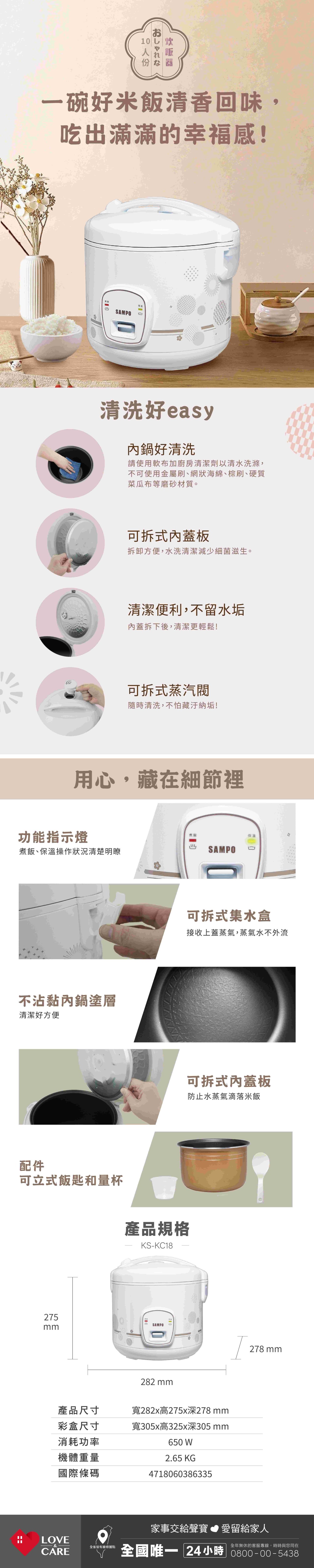 ▶ 可拆式內蓋板,防止水蒸氣滴落米飯