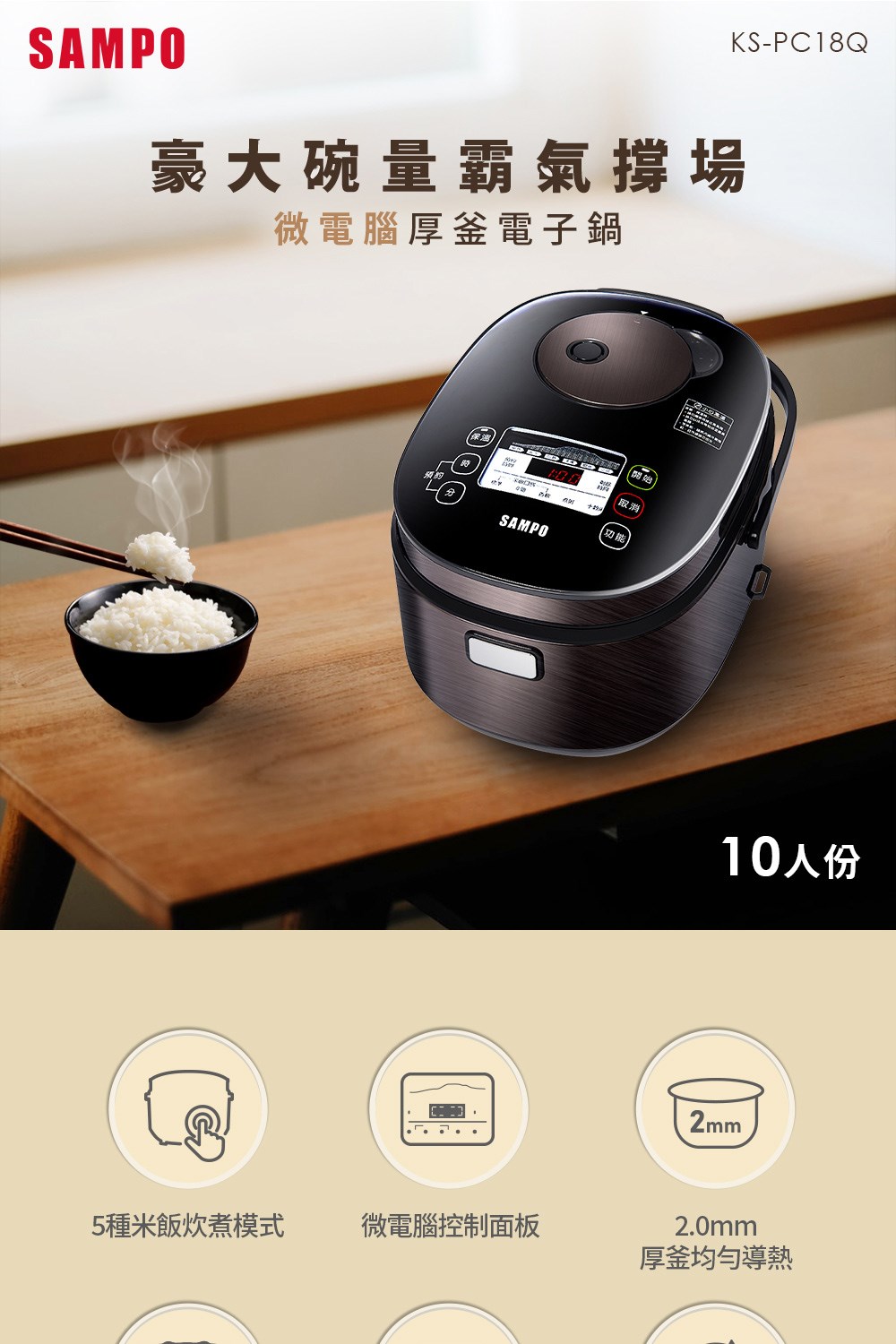 【SAMPO聲寶】10人份微電腦厚釜電子鍋