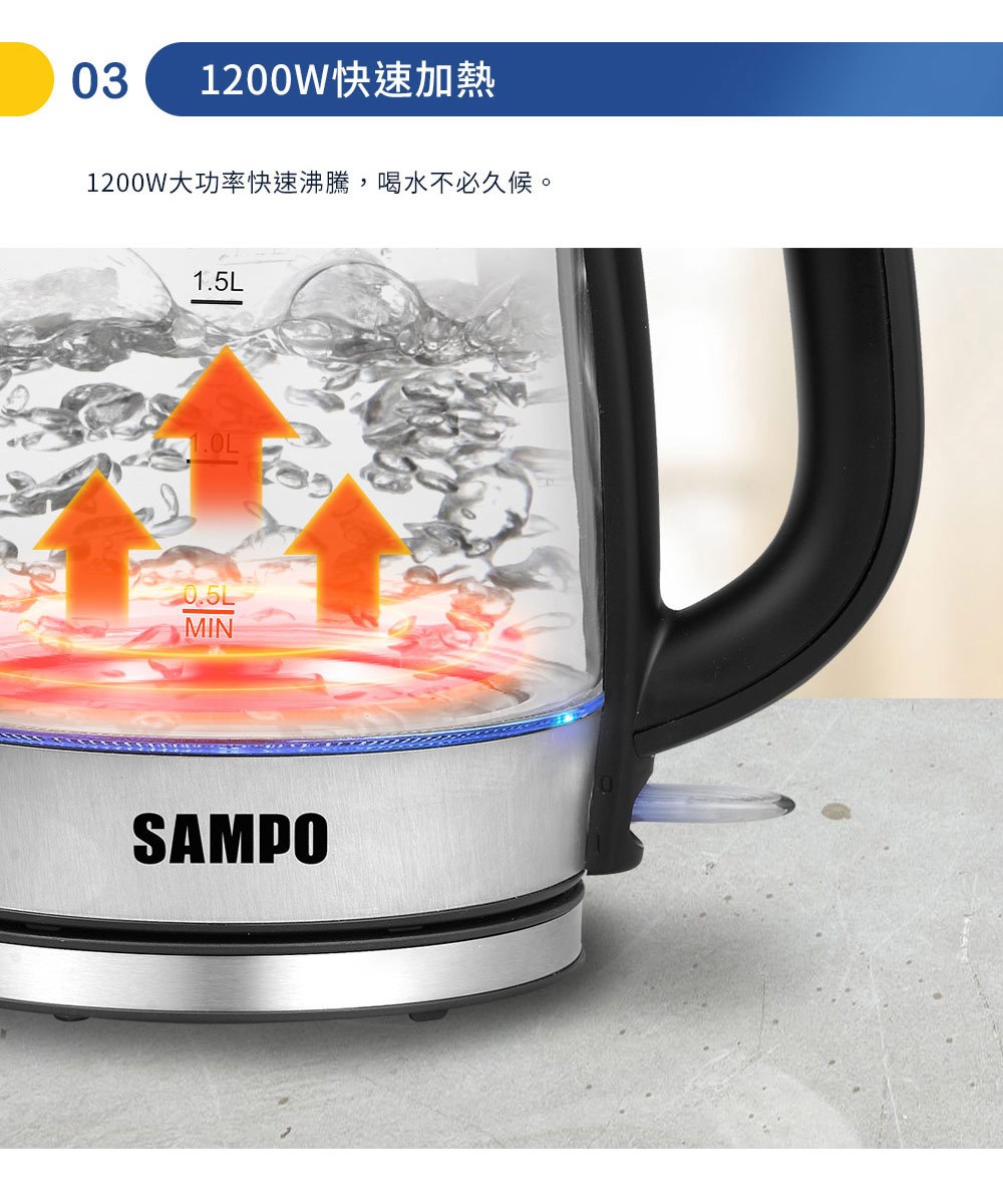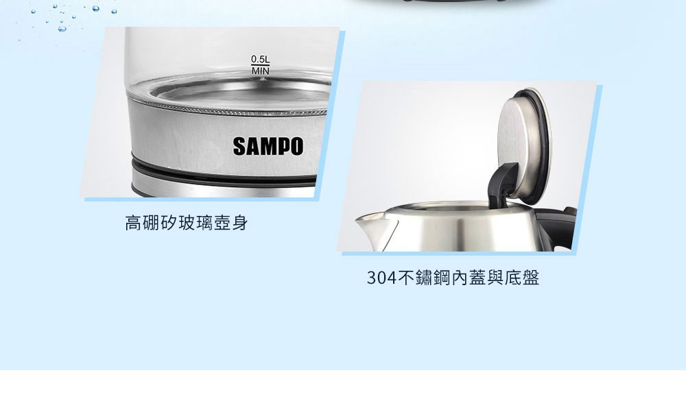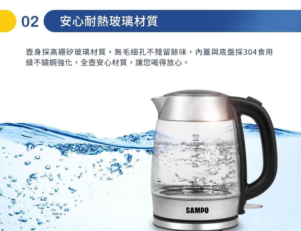 【SAMPO聲寶】1.7L玻璃快煮壺