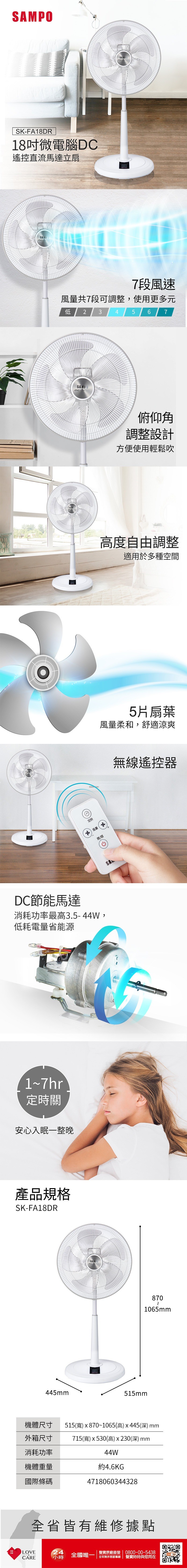 【SAMPO聲寶】18吋微電腦遙控DC節能風扇