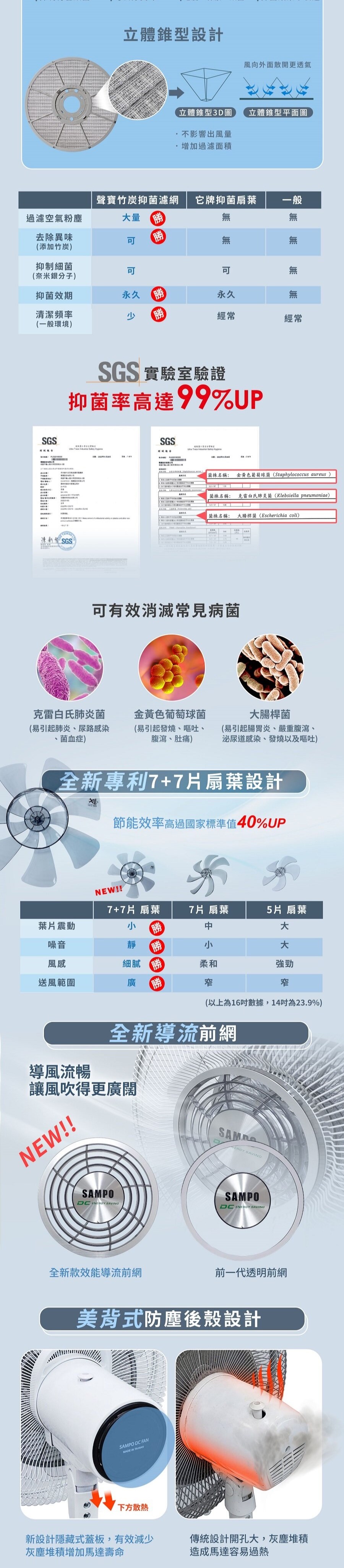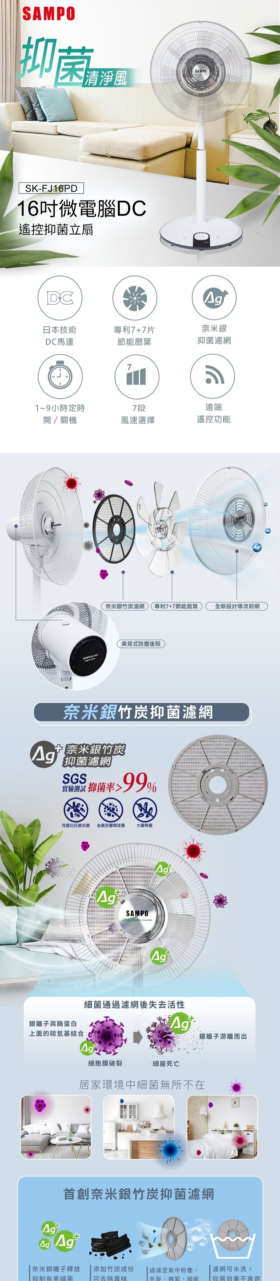 【SAMPO聲寶】16吋微電腦DC直流馬達抑菌立扇