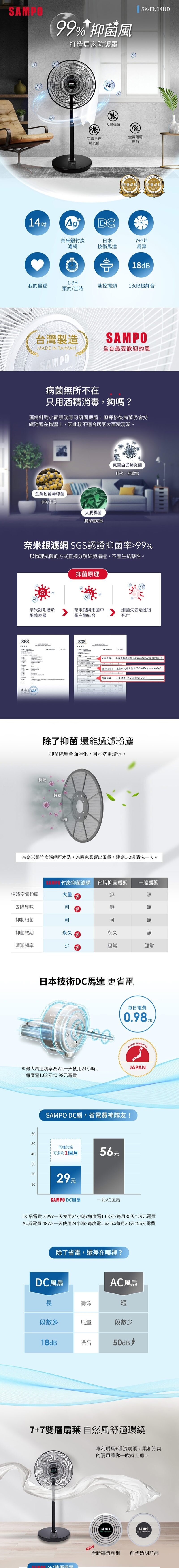 【SAMPO聲寶】14吋微電腦DC直流馬達抑菌立扇