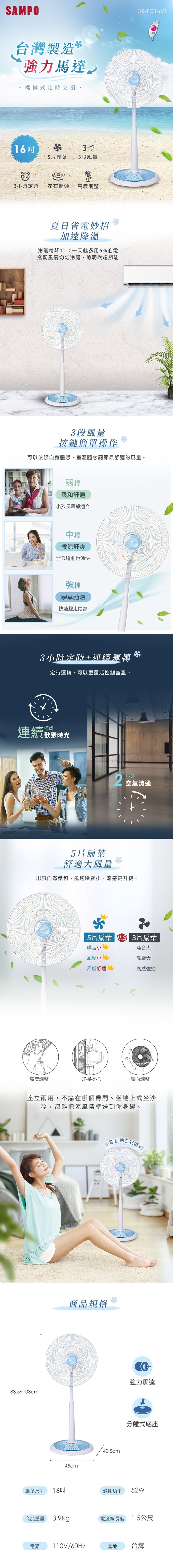 【SAMPO聲寶】16吋星鑽型機械式立扇