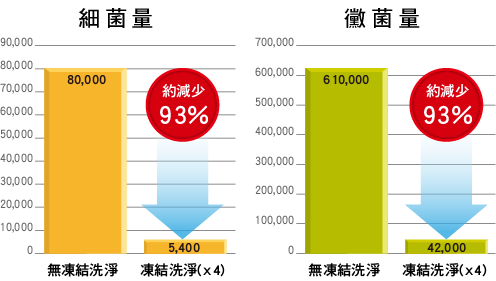 經過Kitasato環境科學研究中心試驗證明,進行凍結洗淨4次後,可以有效抑制機體內部細菌黴菌的滋生。