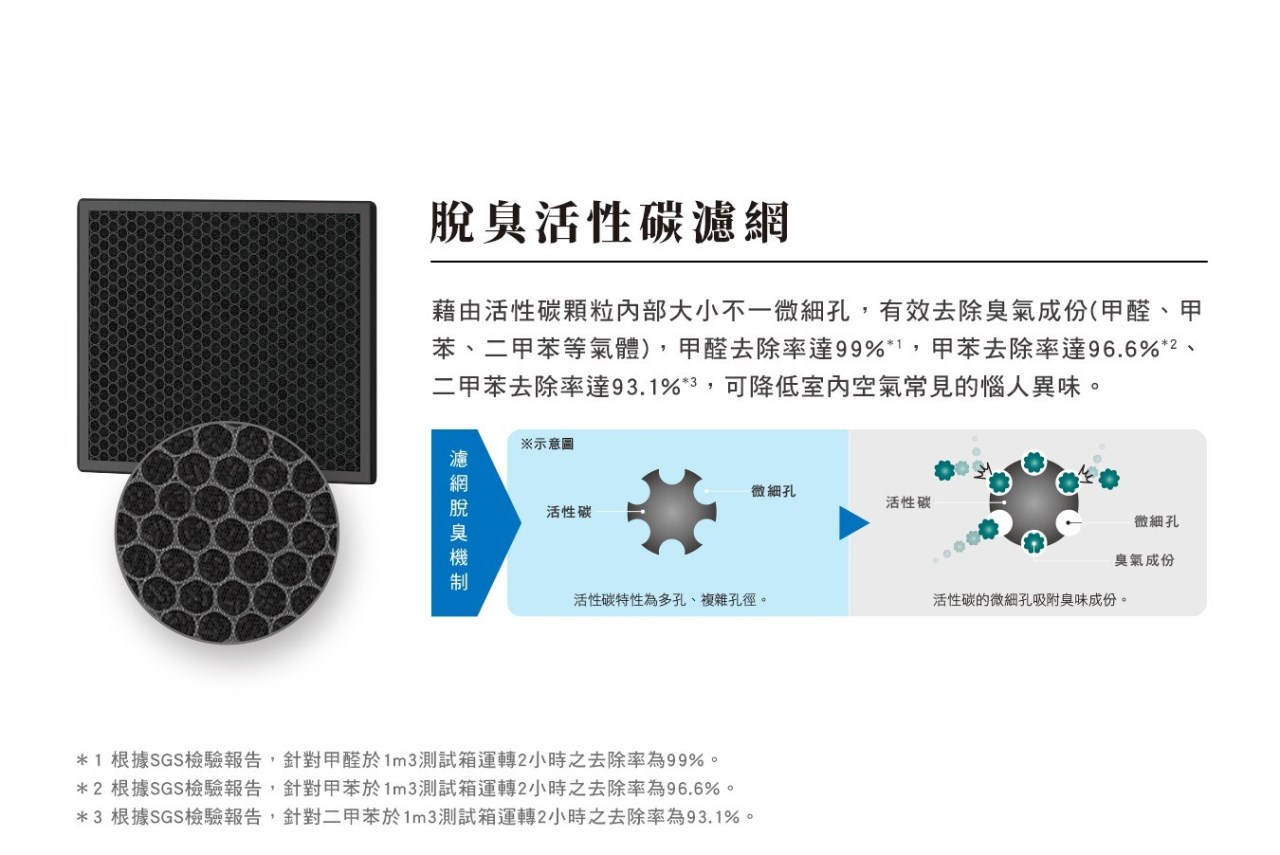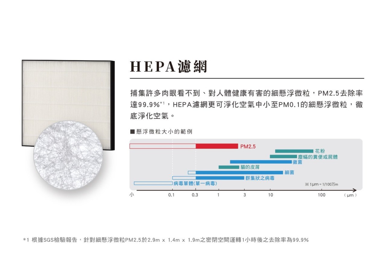 搭載高密度平織空氣濾網、HEPA濾網與脫臭活性碳濾網*,層層濾淨空氣。淨氣離子生成裝置可淨化空氣,只要按下淨氣離子鍵,即可釋放淨氣離子,讓你隨時隨地暢快呼吸清新空氣。
