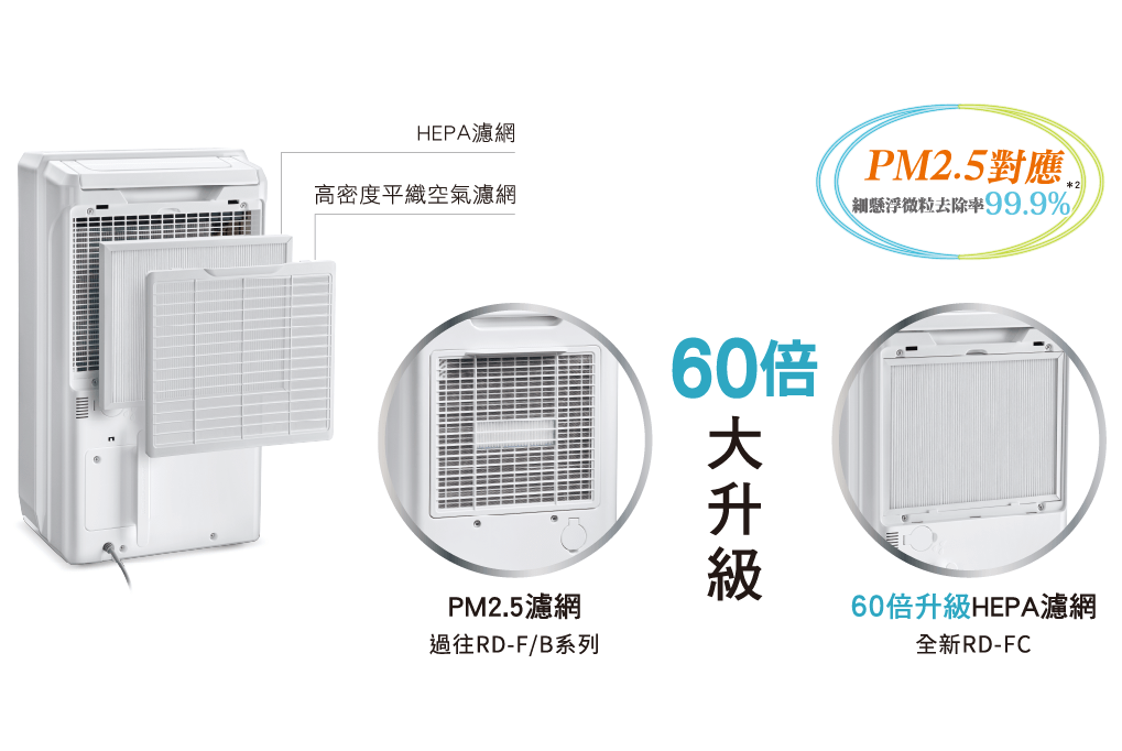 搭載HEPA濾網,有效過濾面積增大60倍