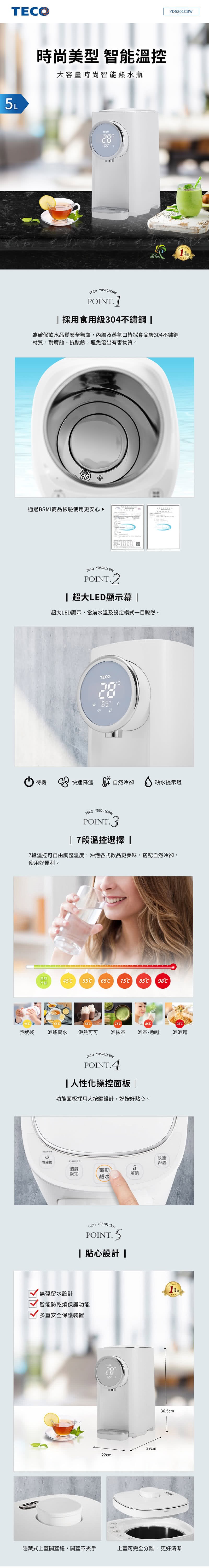 【TECO東元】電熱水瓶5L