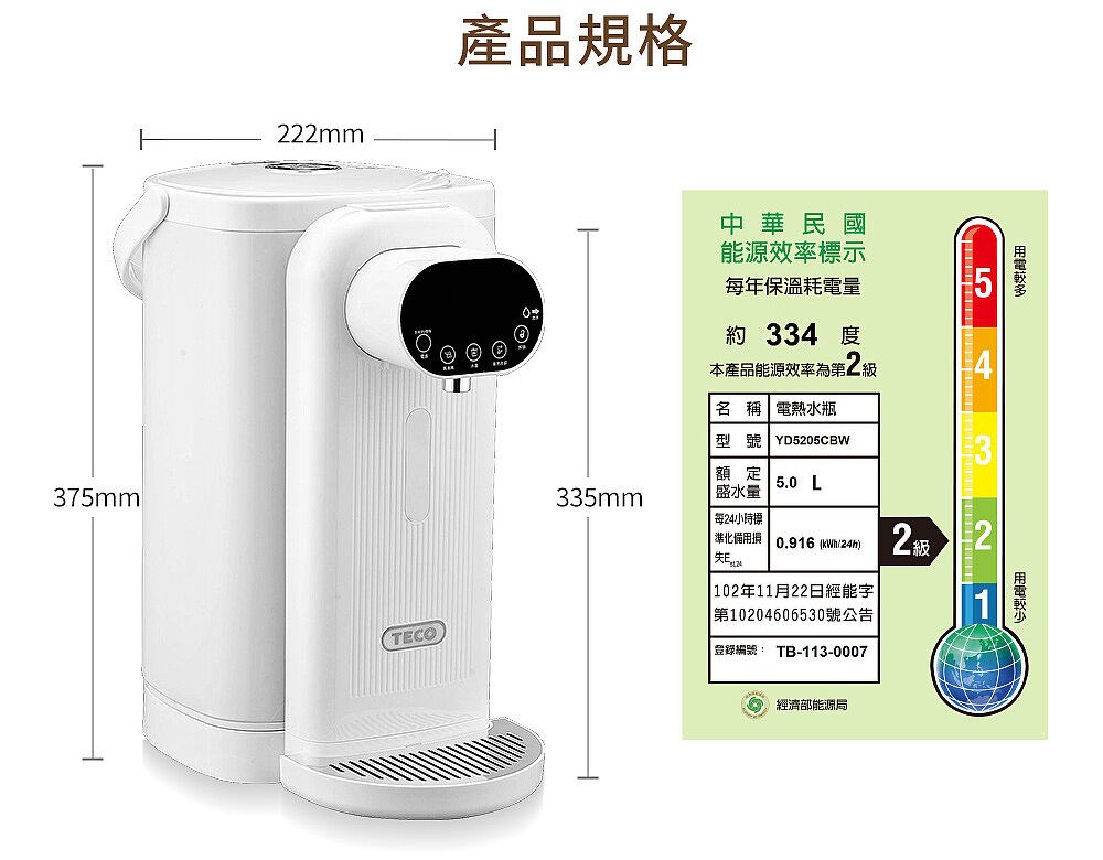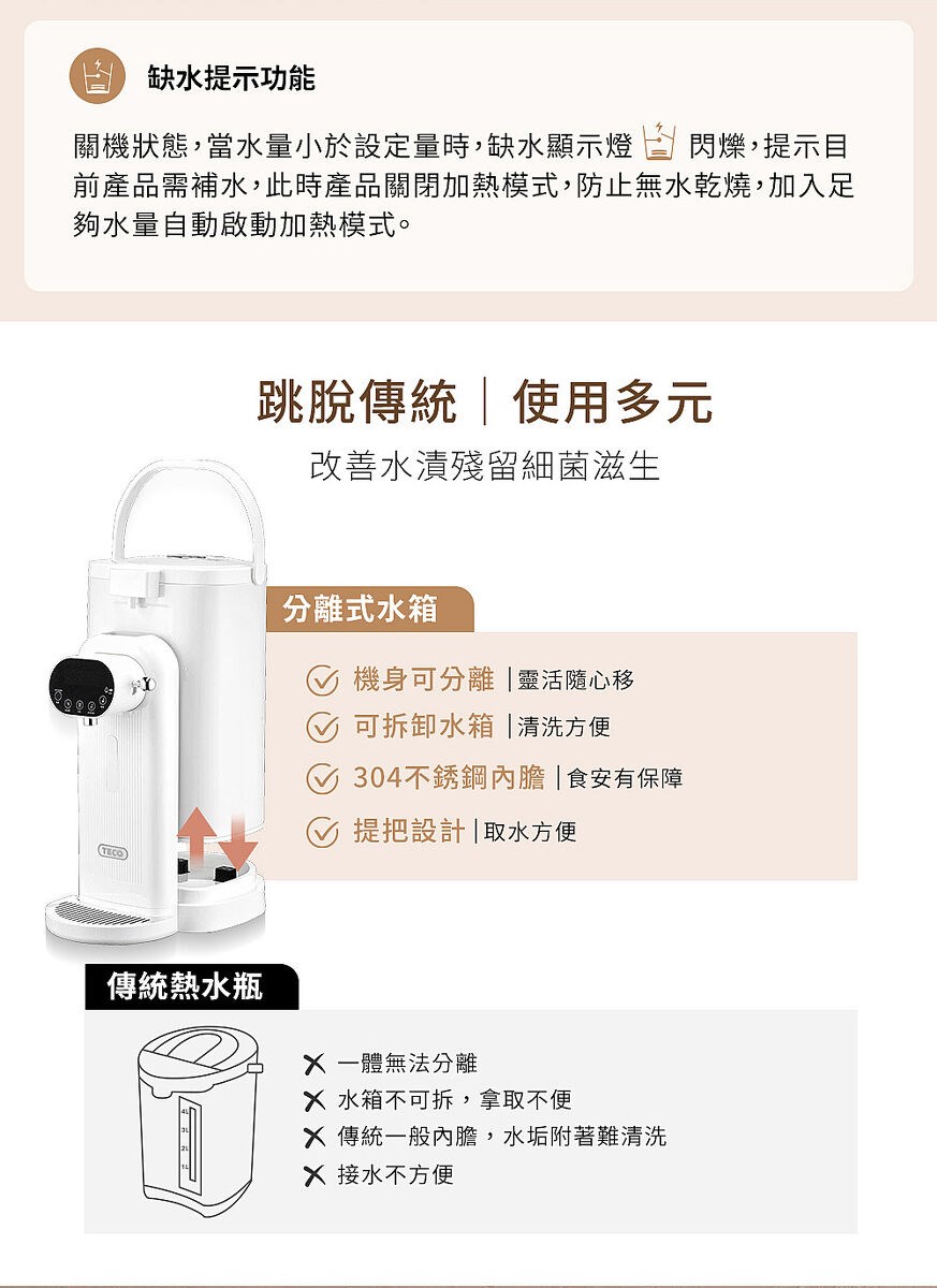 【TECO東元】5L微電腦溫控熱水瓶 (分離式水箱)