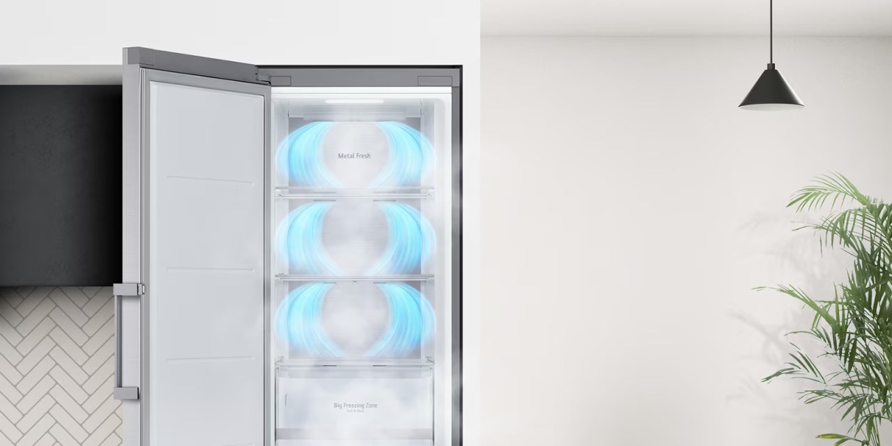 冷凍櫃每處皆有冷流,圍繞包覆著食材,鎖住食材新鮮。