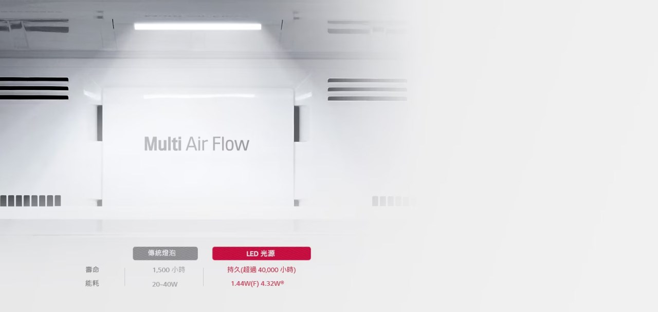 DoorCooling+™ 四方吹冷流+™的冷流效能更均勻、速度更快,讓飲料更沁涼、食材更新鮮。