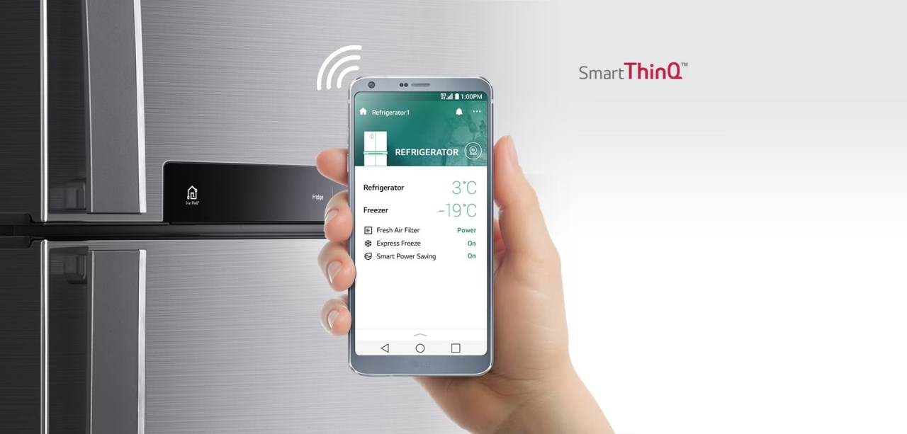 LG ThinQ™ App讓您一指即可在外遠端遙控冰箱,遠端設定冰箱溫度、設定鮮淨過濾模式與診斷冰箱狀態,讓您用WiFi串連家的美好!