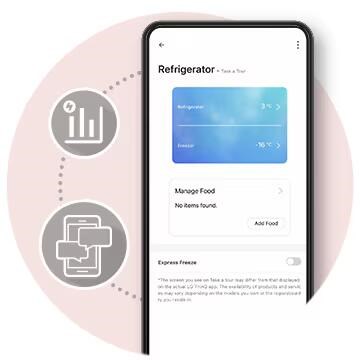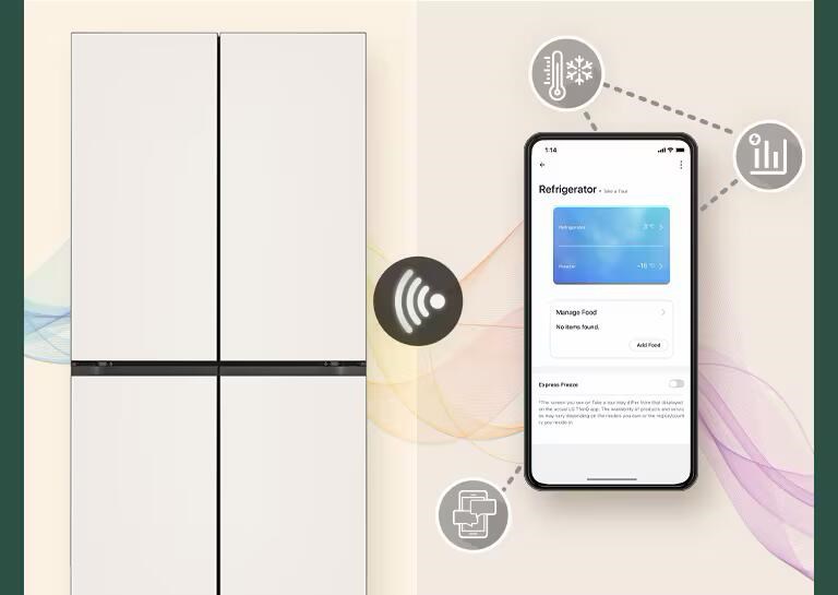 透過LG ThinQ™ 應用程式,即可遠端操控冰箱及接收最新推播通知。