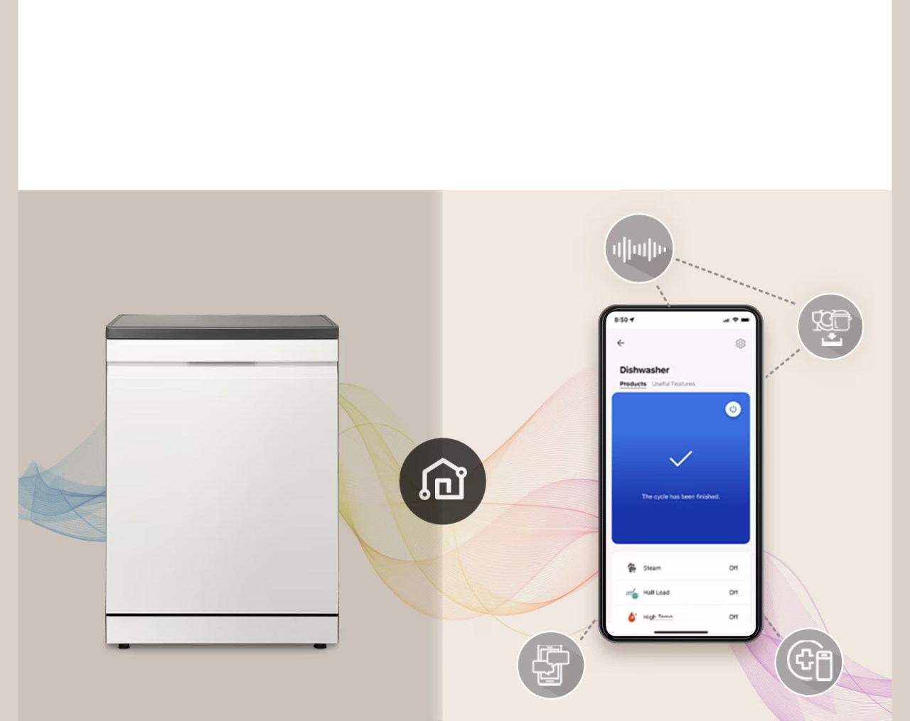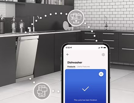 透過 LG ThinQ™ 應用程式 即可隨時掌控洗碗機狀態與個人化進程。