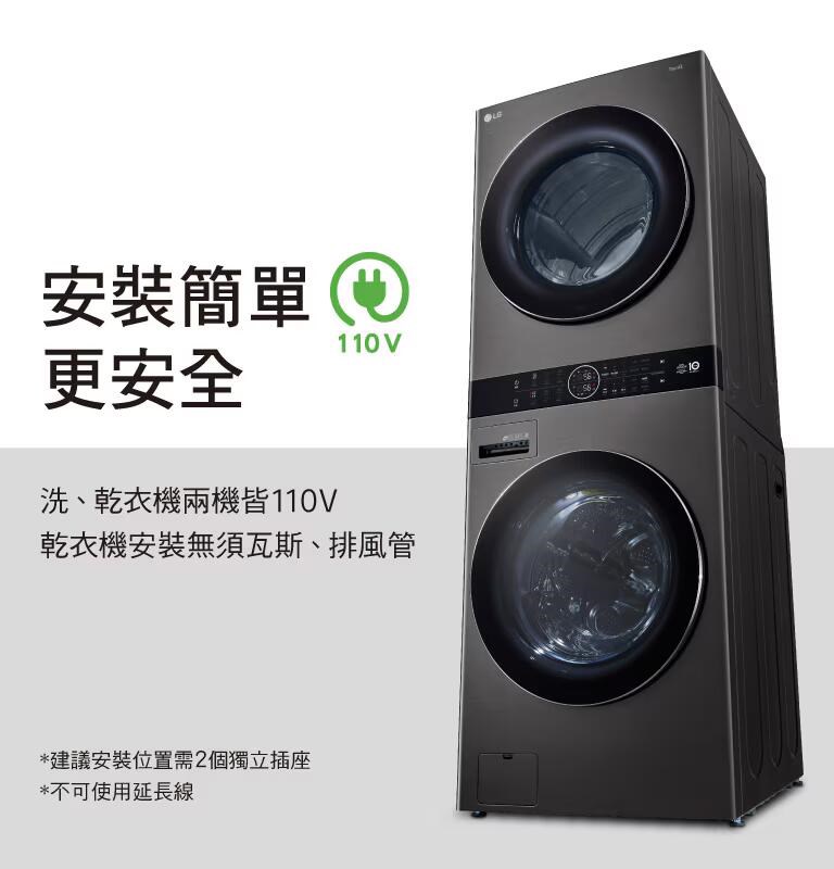 LG WashTower™ 創新垂直流線型設計,一體成型整合洗衣機和乾衣機。