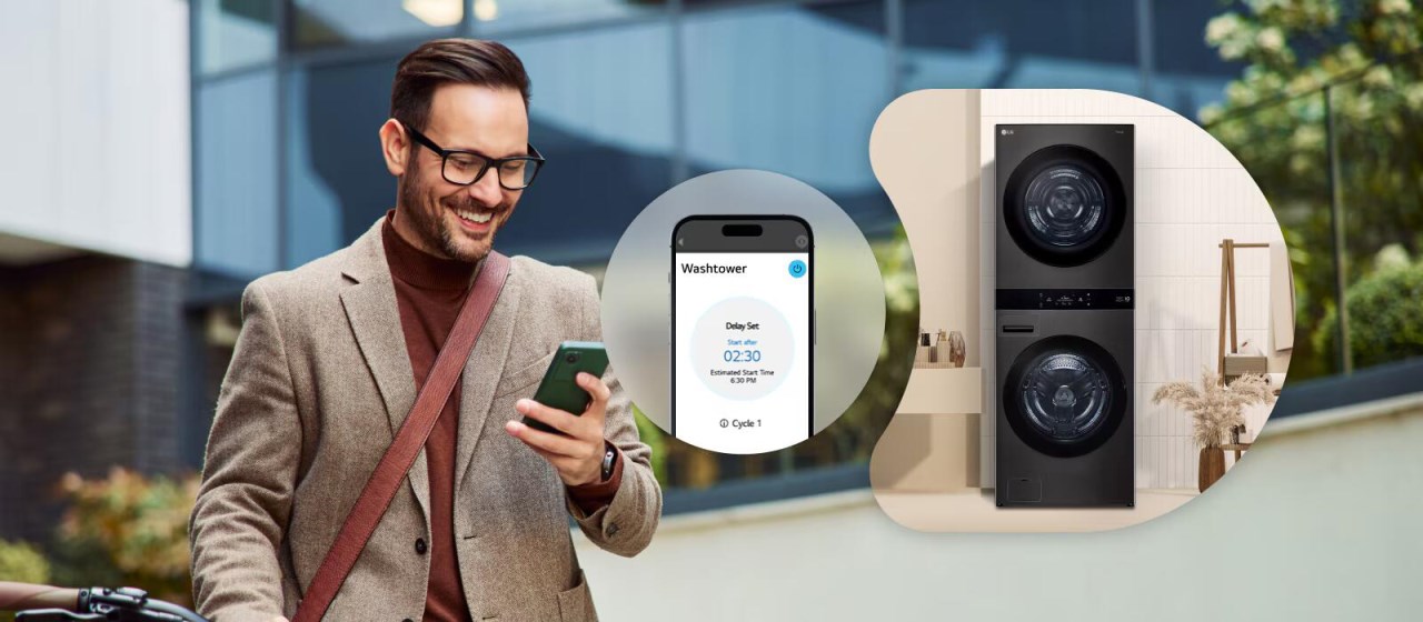 無論是日常保養或更龐大的工作,都能透過 ThinQ™ 應用程式,方便地監控 WashTower™ 的能源使用情況,亦可取得提醒通知、或下載行程。