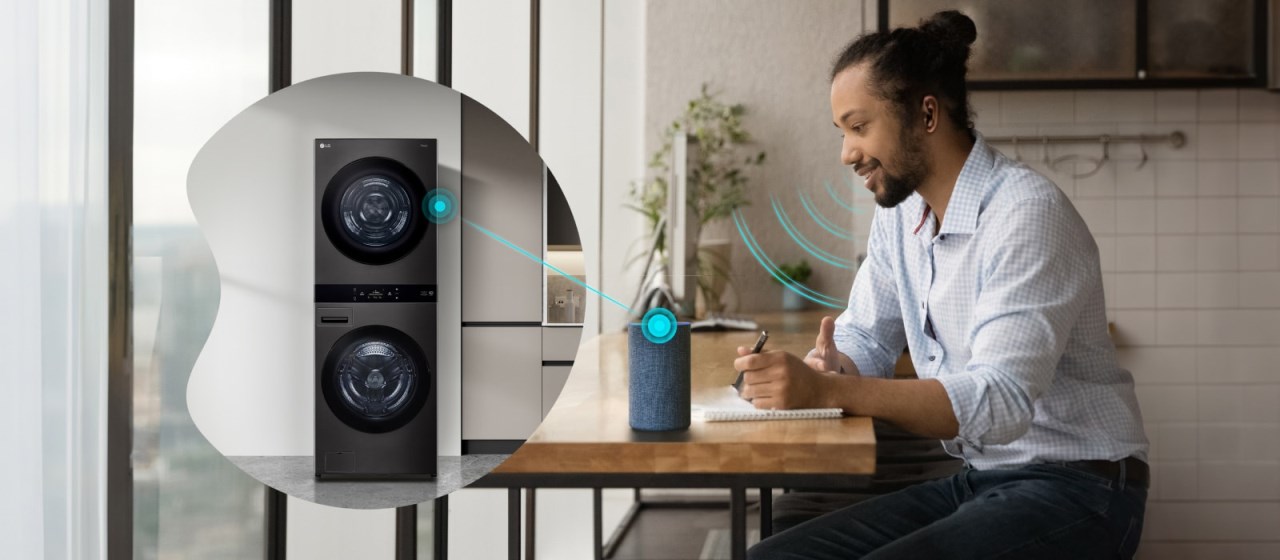 只需告訴智慧音箱或 AI 助理您需要完成的工作,餘下的操作即可放心交給 WashTower™ 處理。