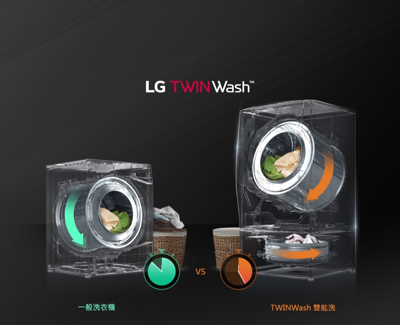 上方的洗衣機主要清洗一般大量衣物,下方的小型 TWINWash™Mini 洗衣機可同時清洗小型與精緻衣物。你可以同時清洗兩批衣物,但所花費的時間更少、更輕鬆。有效降低一半的洗衣時間!