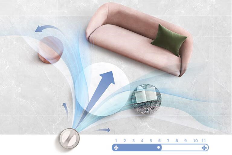 「集中清淨」模式(F1)可設置為1到10段+Turbo的風力強度,為房間提供涼爽的風。