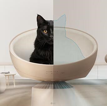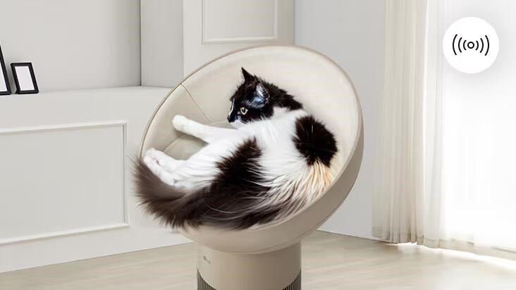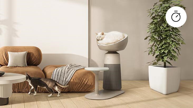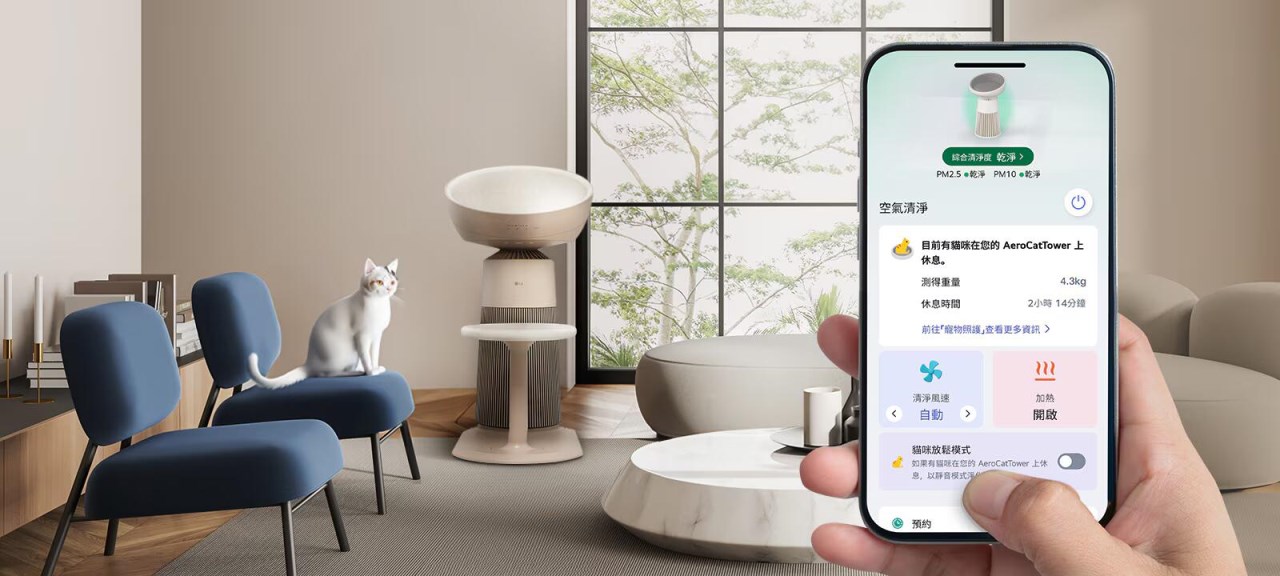 透過 LG ThinQ 應用程式,隨時隨地輕鬆控制空氣清淨機,並監測貓咪的體重與休息時間。