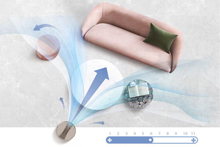 「集中清淨」模式可設置為1 到 11 段數的風力強度,為房間提供涼爽的風。